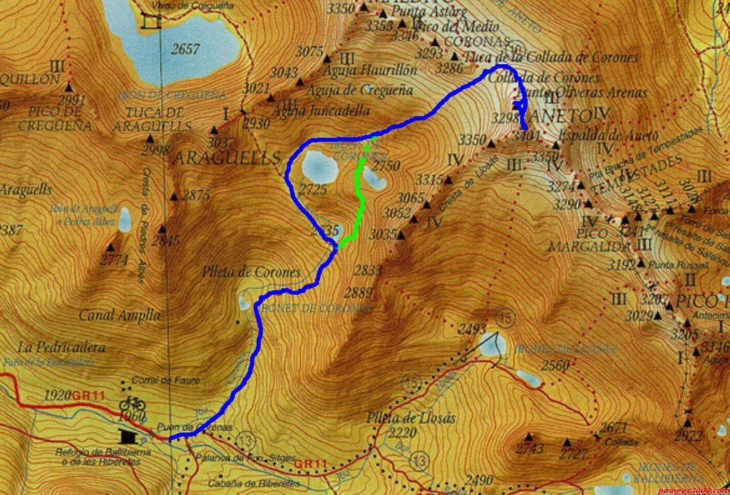 Карта Aneto1 - Схема пика Ането