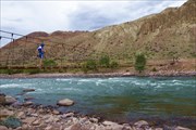 Подвесной мост перед поселком Кызыл-Ой