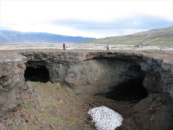 Ледниковая речка течет через застывшую лаву