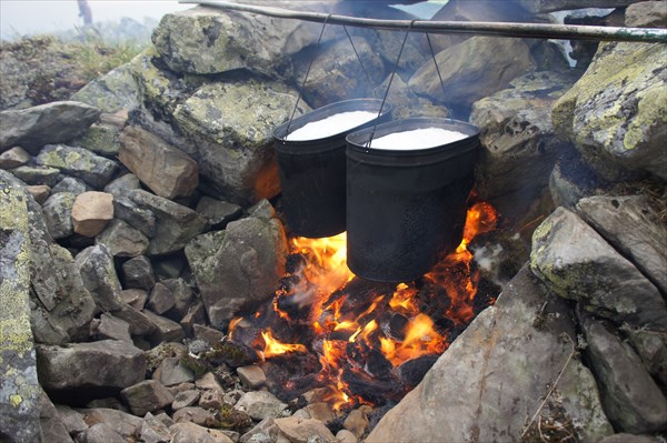 Поднимаемся выше снежника. Здесь решаем заночевать, т.к. дальше, не будет места под палатку. К сожалению, сегодня прошли очень мало. Да! На этой площадке нет ни воды, ни дров.
