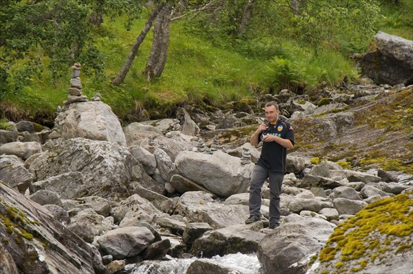 Вечером первого дня. Денис кашеварит.