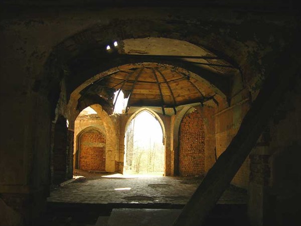 Строения усадьбы, были построены в стиле средневековых замков. Когда-то это был довольно оригинальный и очень красивый архитектурный комплекс. Сейчас это уже одни развалины и захламление, довольно унылое зрелище, а вполне могло бы быть исторической гордостью этого края. Тем не менее, все равно было интересно посмотреть.