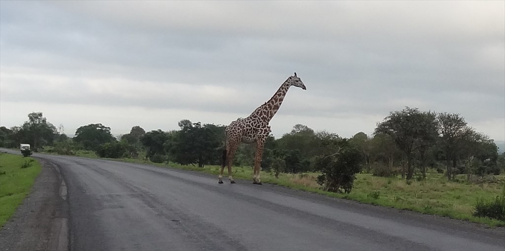 Наш автобус был вынужден притормозить: через дорогу величаво, абсолютно не обращая на нас внимания, переходил жираф...