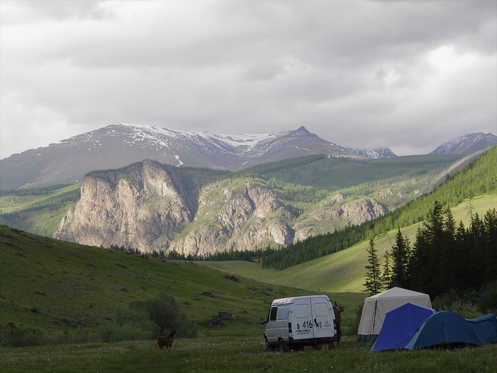 встали у реки, здесь проходит тропа на Мажой (45 минут ходьбы)
