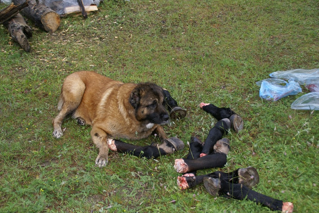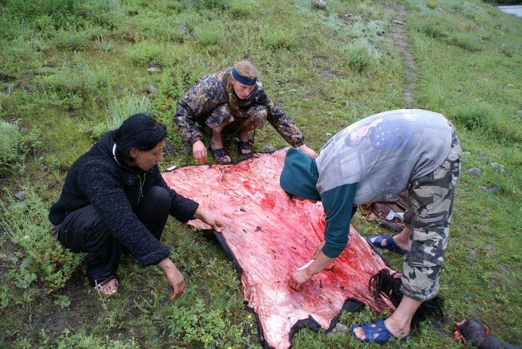 местные жители забили 2х коней, ну и нам достались - шкуры и копыта