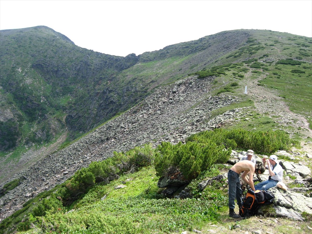 На гребне.Слева и выше-вершина.