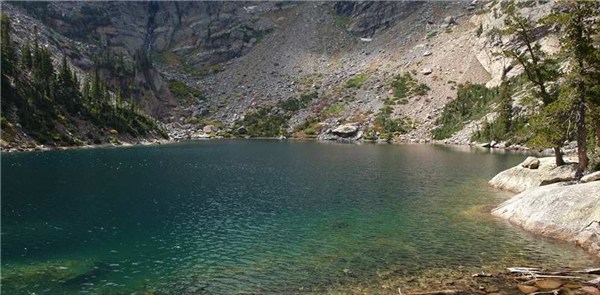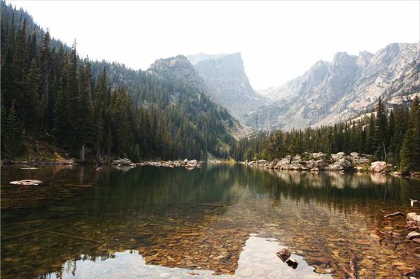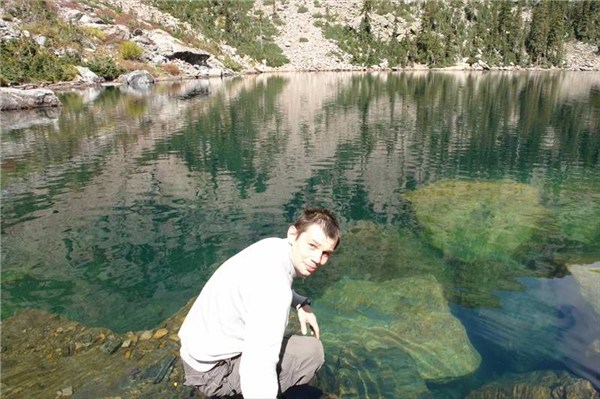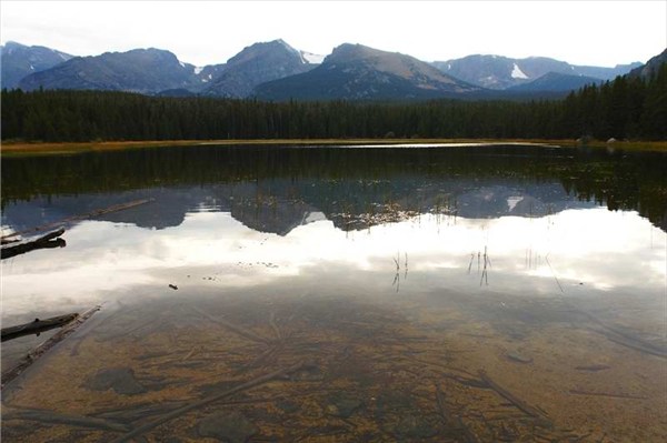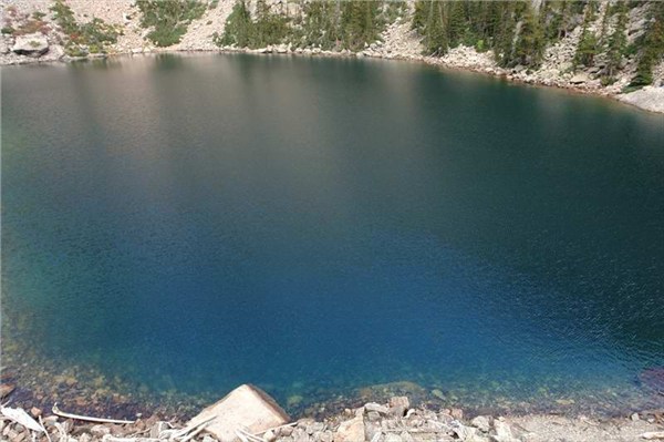 BEAR LAKE.Прозрачная вода.Видны коряги и брёвна на дне.