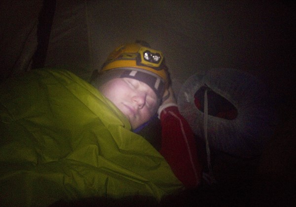 Настоящие спелеологи даже спят в каске ))