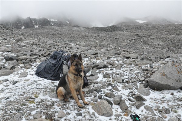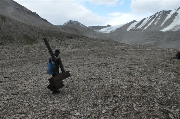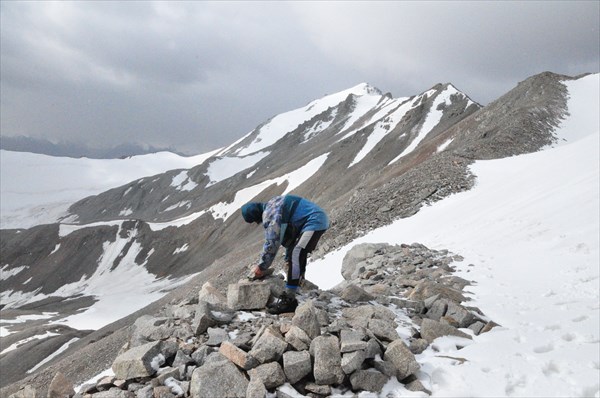 Володя строит лагерь под перевалом Коккельбель