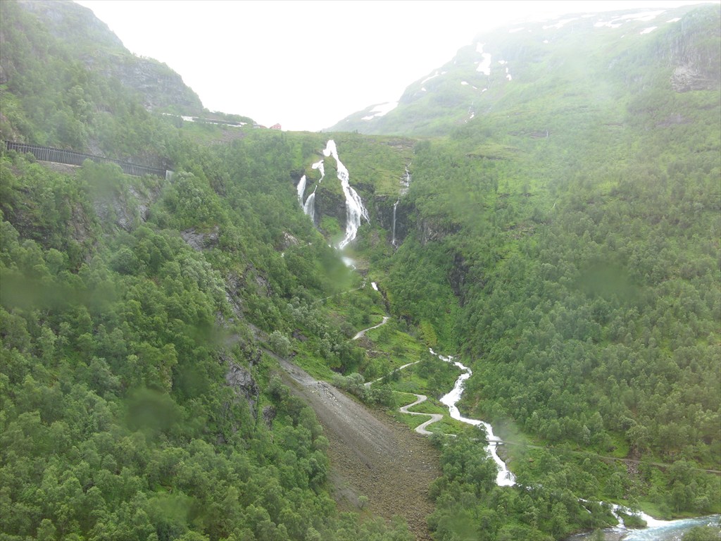 Первый участок - серпантин вдоль водопада (вид с поезда)