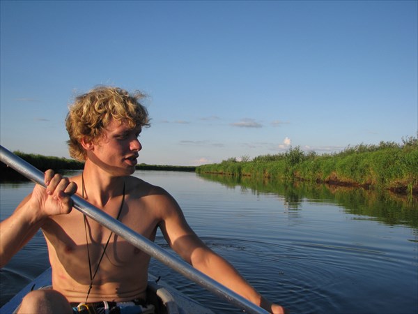 Мещёра, гребя веслами