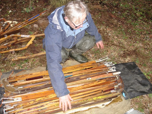 скелет байдарки разложен