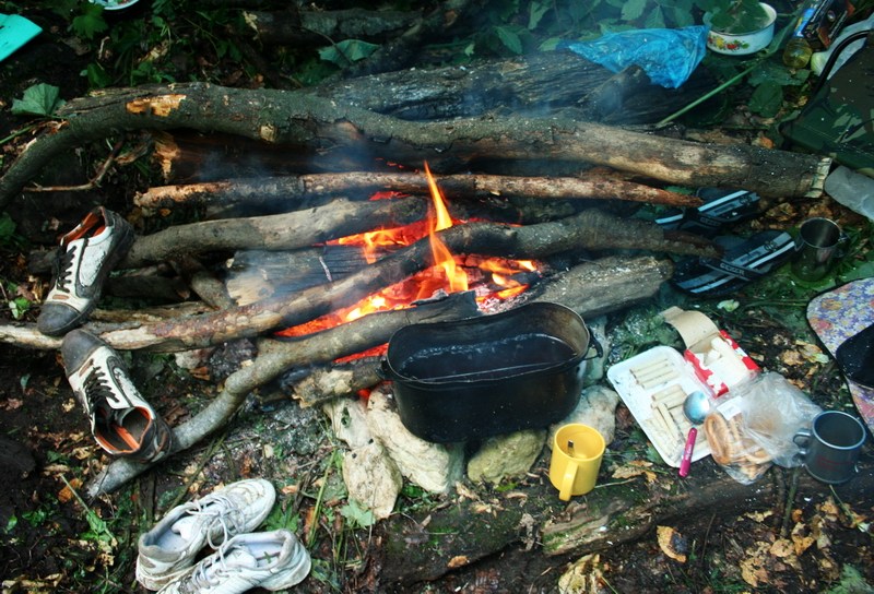 Костер в нашем новом лагере на берегу речки Армянки