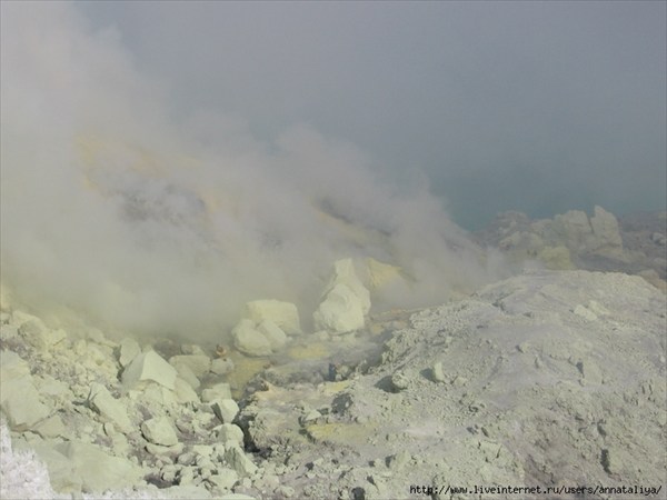 На спуске в кратер вулкана Иджен