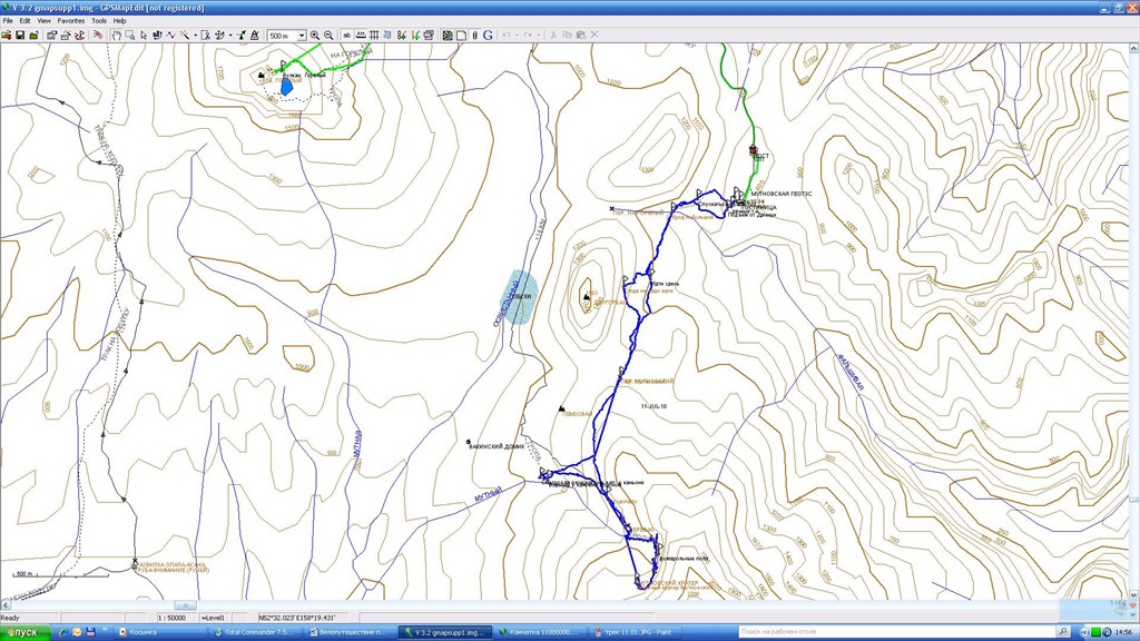 ЗЫ: прямую линию на треке навигатор нарисовал после того, как он был выключен наверху вулкана Горелый и включен внизу после спуска.