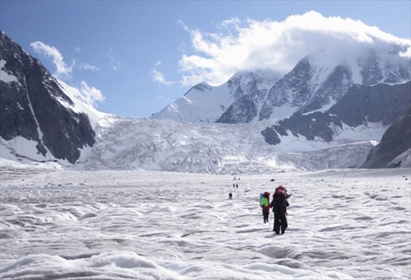 Бийчанка отпадает. А на ледопаде тем временем снег уже размокает, лед под ногами гудит, часть мостиков проваливается. Жара! И самое неприятное, что нам до верха осталось не так много, но вторая подгруппа слишком далека от цели с учетом все возрастающей температуры окружающей среды и потенциальных ледовых обвалов. В очередной раз обращаем свои вопросительные взгляды к Фемиде. Чаша безопасности перевешивает. Опять. Все-таки у нас горный поход, а не авантюрное приключение. Что ж? Оставим ледопад как-нибудь на потом. Мысли пройти его позже не покидают нас, передовой отряд.