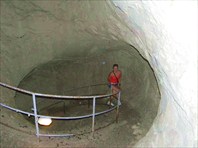 Где-то около 10 мы были уже возле пещеры. Перед входом толпились люди. 45 гривен с человека…билетики…и через пять минут мы вместе с ними, вооруженные фотоаппаратами и камерами, входили в пещеру через попсовый туристический вход с дверями, ступеньками, бетонированной дорожкой и поручнями…