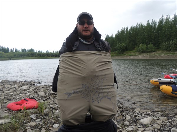 - В русле реки оголяются острые, плохо окатанные и опасные, предположительно, кварцевые глыбы. Наехав на одну из таких глыб в 3.5 км. от озера, мы нехило порезали катамаран: и внешнюю часть, и надувасик.