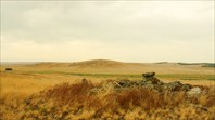 Неожиданно решаю сократить путь. Свернул с дороги и прямо по степи поехал в сторону горы. У границы заповедника оставил машину и пошёл дальше пешком. Взошёл на холм и остановился у кучи камней …(фото 17)